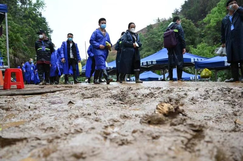 连续2天,广西梧州市藤县埌南镇莫埌村持续大雨,东航坠机事故搜寻区域到处积水。由于附近山体积雨量较大,土壤含水量高,土层疏松易引起滑坡,给搜救工作带来新的困难。