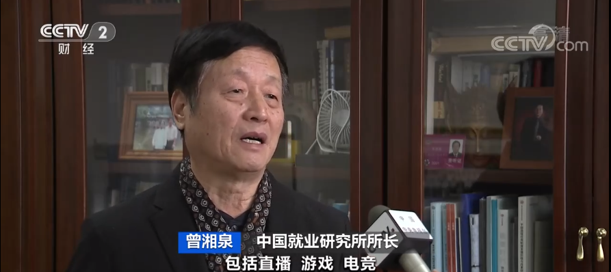 中国就业研究所所长 曾湘泉:数字文化产业,包括直播、游戏、电竞,还有文学平台,以及音乐、动漫、美术平台,这些创造了很多新的就业岗位。大学生有很多受过良好教育的人,他们其实可能不愿意去做传统的生活服务业,但是愿意做现代的数字文化产业,所以其实这个也扩大了很多就业。