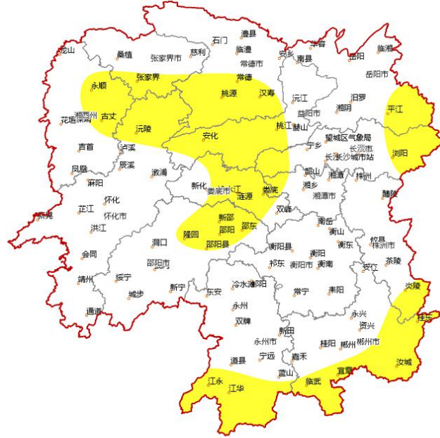 湖南省气象台今天16时发布大雾黄色预警:预计9日早晨长沙、株洲南部、邵阳北部、岳阳南部、常德南部、张家界南部、益阳南部、郴州南部、永州南部、怀化北部、娄底、湘西州东部将出现能见度≤500米的雾,且有成片≤200米的雾,部分地区将出现强浓雾,能见度低,将对交通运输造成较大的影响。