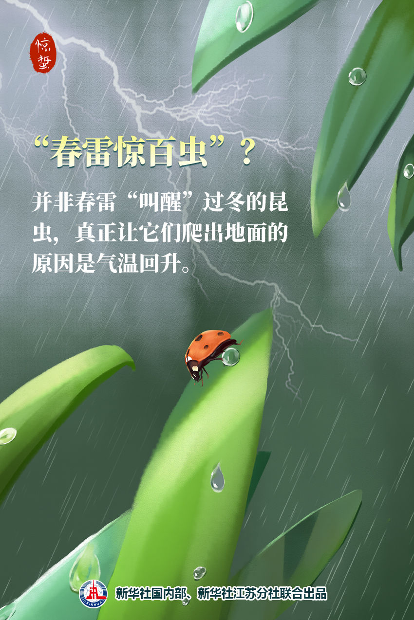 南京信息工程大学应用气象学院副教授江晓东介绍,所谓惊蛰,字面意思是春雷始鸣,惊醒蛰伏于地下越冬的蛰虫。这里涉及两个要素:雷和虫。