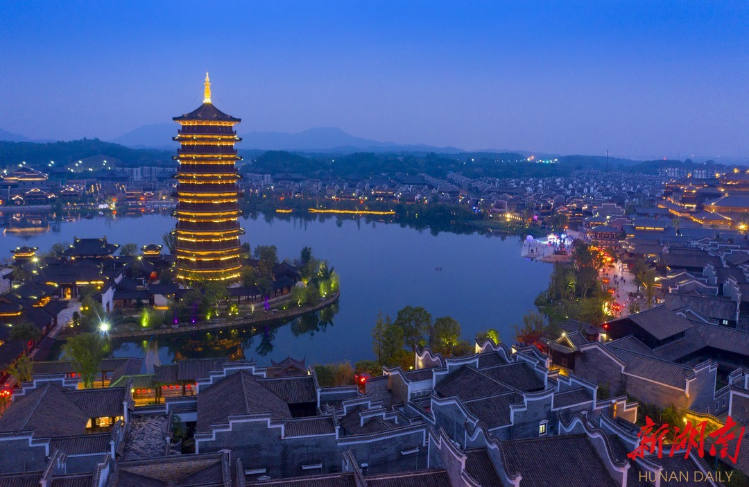 (长沙铜官窑古镇,夜色下的古建筑,美轮美奂。唐俊 叶子君 摄)