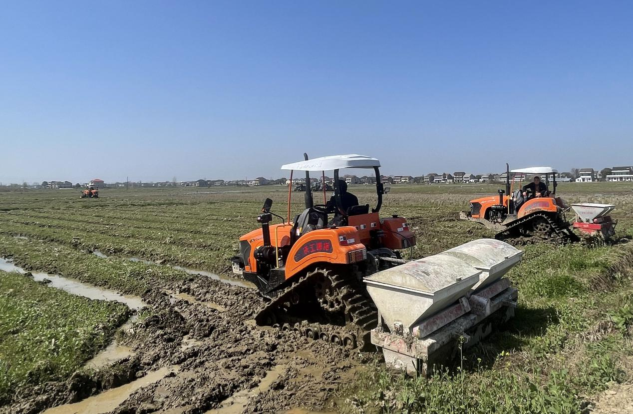 “履带式旋耕机不会压烂农田的底子,速度也比轮式的快了三分之一。精量石灰撒施旋耕一体机边旋田、边撒石灰,省时又省力!”种粮大户陈志强对本地农机企业富佳科技推出的农机很满意。