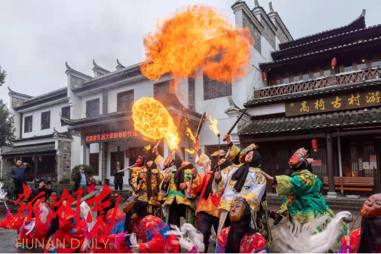 近年来,会同县委遵循“活体村落、原态保护、产业支撑、文化挖掘”原则,传承弘扬传统文化,大力发展文旅产业。以高椅民俗风情传承为主要轴线,打造“山水相依、宜居宜游”的传统古村落,同时抢抓大湘西精品文化生态旅游发展契机,着力打造全省少数民族民俗文化和生态旅游核心景区、全国传统村落整体保护利用示范村。2020年,高椅古村累计接待游客逾16万人次,旅游收入600余万元,占村庄总收入的20%,人均可支配收入达12400元。