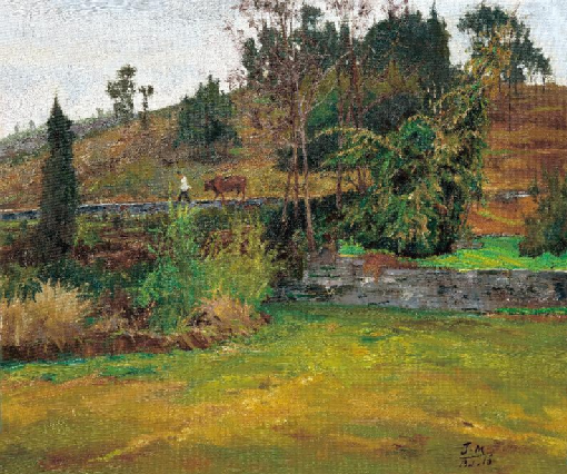 纵观肖家墨的风景油画创作,我感受到他是走在乡间的小路上,以心映照万物,为山川而立言,通过画面表达出自己的情感、立场与态度:阳光而且明媚,热闹不失宁静;在回忆中充满希望与憧憬,在留恋中渴望前进与变化;既有牧歌的风味,又有幸福的韵味……情景交融、景随情至、情为景生。“笑意写在脸上,哼一曲乡居小唱,任思绪在晚风中飞扬。多少落寞惆怅,都随晚风飘散,遗忘在乡间的小路上”。愿肖家墨能随意挥洒自己手中的彩笔,画出乡间小路美好的新生活。