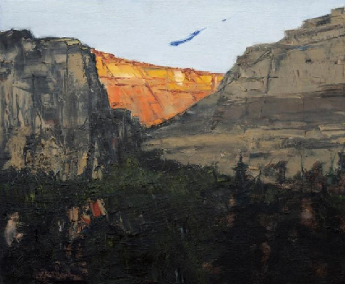 在肖家墨的油画创作中,对故乡深沉的情感,不只是体现在对过去的回忆与表现上,还体现在对现在家乡变化的细致描绘中,他以自己对风景绘画所特有的解读领悟力,用色彩画出了家乡的山乡巨变,最能突出集中表现这一特点的是他的《山迹系列》。