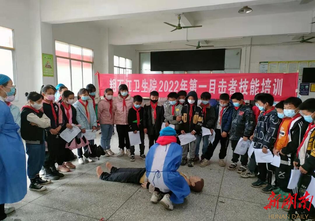 大众卫生报·新湖南客户端3月31日讯(通讯员 李钟胜 刘世康)3月30日,永州市江永县粗石江中心卫生院组织持有“第一目击者培训资格证”的专业人员,在该镇中心小学为师生们开展“现场救护--第一目击者”现场急救培训,这是江永县卫健系统2022年全县开展该项工作的一个场景。