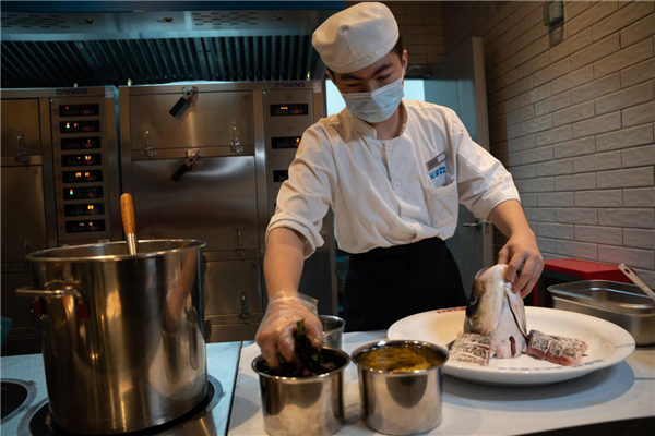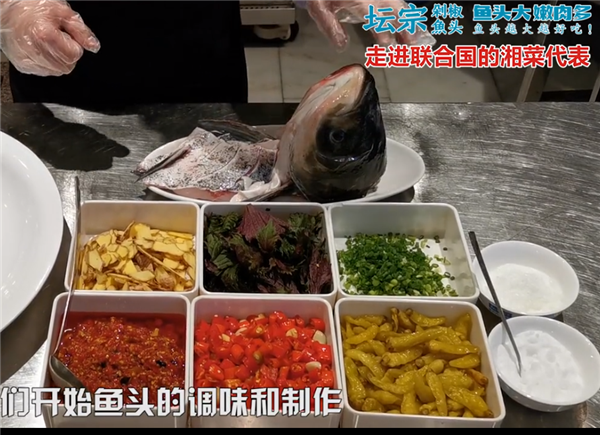 如何成就一道经典的剁椒鱼头?刘鹏表示,从心出发,用心去对待每一个步骤,将每一个步骤做到最佳,就是这道湖南头道招牌菜最真实、最完美的制作方法。他介绍,每一条来到坛宗的鱼儿都要经历三层考验,献出头颅,做个spa,“吃”点美食... ...将最精华的鱼头与低脂肪高蛋白且肉质鲜美的鱼腹肉搭配使用,配上五种古法工艺手工制作黄金配比的老坛剁椒,滋味相融,成就一种新的风味。