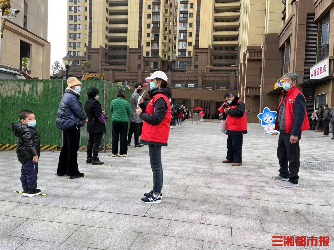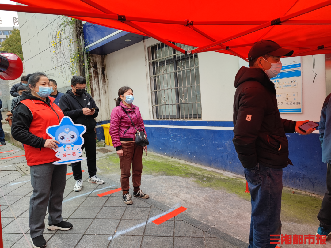 3月24日,在赤岭路街道芙蓉南路社区,志愿者们举着“星仔”防疫标识牌,来到附近的核酸检测点,在维持秩序的同时,提醒居民“戴口罩”、“不聚集”、“勤洗手”。“星仔”可爱的形象一经亮相,便引来了居民的注意,尤其是小朋友,目不转睛地盯着。
