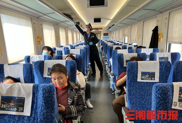 “‘城铁快巴’的车内设施比较人性化,配有折叠餐桌和电源插座,配备充足的洗手间和电茶炉,还设有大件行李摆放处。新增设的硬卧车厢宽敞明亮,让广大旅客出行更舒适。”Z8018次列车长言嘉说。