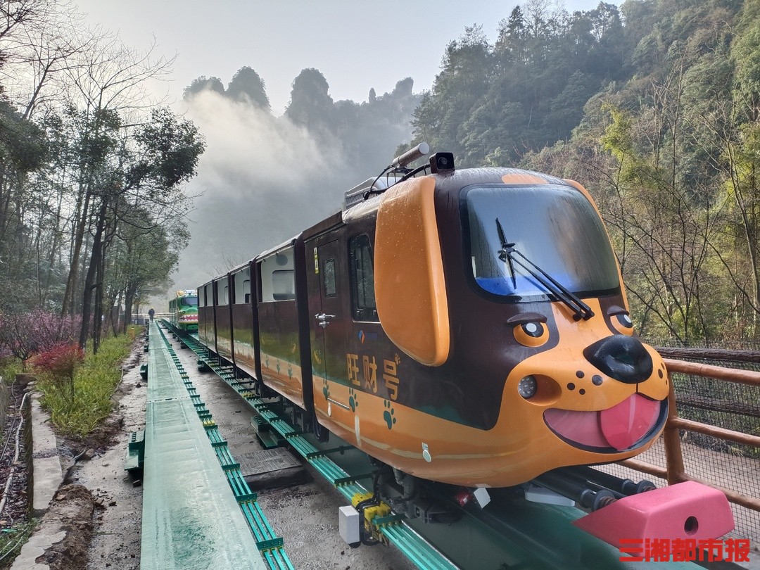 据介绍,十里画廊“12生肖”观光电车,在原有基础上除了对电车轨道、游客进出通道、站台、上下站房等硬件设施提质升级外,所有电车车型也采用了大众喜闻乐见的“12生肖”。游人乘坐“义虎号”“牛牛号”等“12生肖”观光电车,穿行在世界罕见的张家界地貌峰丛峡谷中,沿途可以欣赏寿星迎宾、采药老人、锦鼠观天、三姐妹峰等惟妙惟肖的自然景观,令人心旷神怡。