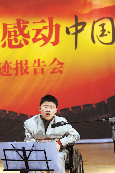 颁奖辞:我们需要静下心来体会这个场面,一个四肢无力的孩子,每天都在和死神赛跑,跋山涉水,万里迢迢。他就像一小截被命运丢弃的蜡烛。善良的人点亮他,他就欢快地燃烧起来。藏起眼泪,还给人们光明和希望。获奖者,黄舸。人生路上,他是阳光少年。