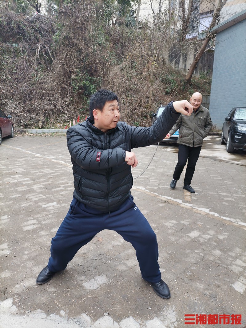 “爷爷和父亲都是军人,从小家里的家风影响,我很喜欢习武。”宾学超告诉记者,他自幼便跟着父亲练习基本功,出于对武术的热爱,他拜了师学习了九节鞭、流星锤、飞针、擒拿、搏击、中国式摔跤等。