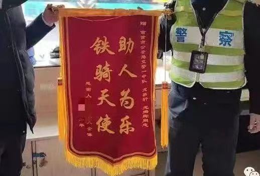 2月14日,家属送来写有“铁骑天使 助人为乐”的致谢锦旗。