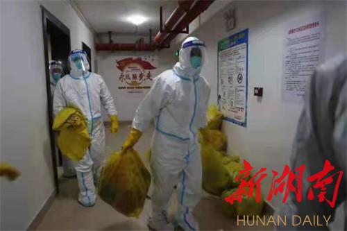 3月22日,南县对集中隔离医学观察点隔离人员进行核酸检测时,发现1例新冠肺炎确诊病例。疫情就是命令,防控就是责任。湖南省应急(消防)救援机动支队四大队受益阳市消防救援支队党委调派,迅速集结18名指战员,成立党员先锋队,启程赶往南县。当天中午抵达南县后,他们来不及休息,就投入到县城封控区的疫情防控工作中。