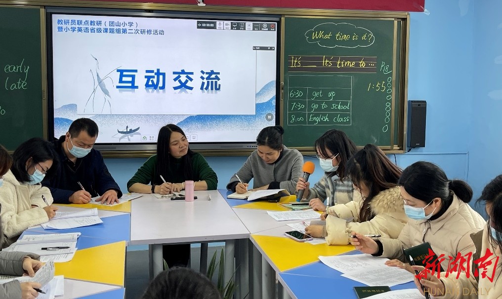 科教新报·新湖南客户端讯(通讯员 夏洁)3月24日下午,株洲市芦淞区教研员联点教研暨小学英语省级课题组第二次研修活动在芦淞区白关镇团山小学举行,课题组12名核心研究人员及团山小学的领导、老师们参与了学习。本次活动由芦淞区教研中心举办,旨在落实双减政策要求,提高区域小学英语课堂教学质量,发展教师教学素养和科研能力,扎实推进教研员联点教研工作和湖南省“十四五”学会课题——“基于深度学习理念的小学英语整合性教学行动研究”的实践探索。活动主题是“双减”背景下小学英语课堂整合性教学策略探析,分“课例观摩、评课交流、主题发言、互动交流”四个环节进行,由团山小学教研主任夏洁主持。团山小学校长凡安飞、书记袁战军全程参与活动。