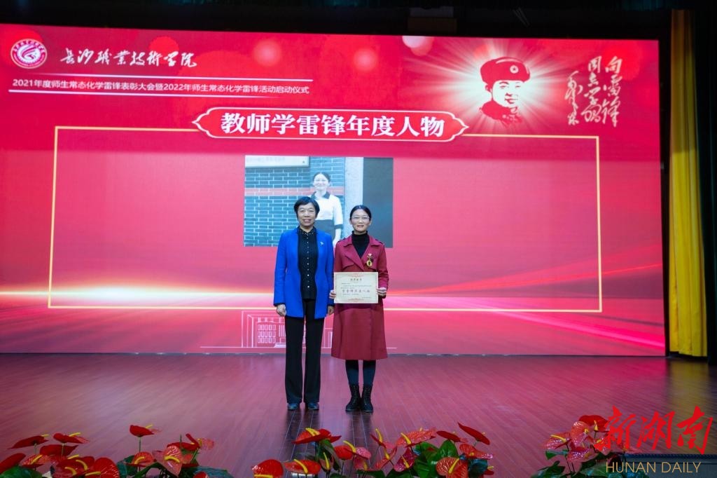如果说黄锦玲对待学生就像一缕春风,春风化雨,润物无声;对待研究像一颗钉子,敢钻敢研,潜精研思;那她对待自己的工作就像夏日的艳阳,永远满怀激情,干劲十足。在长沙职业技术学院2021年度师生常态化学雷锋表彰大会上,黄锦玲又获得了一个新的身份“学雷锋年度人物”,这个角色是独一无二的,是不需要她去扮演的,因为这个称号就是她“爱岗敬业”的本色。