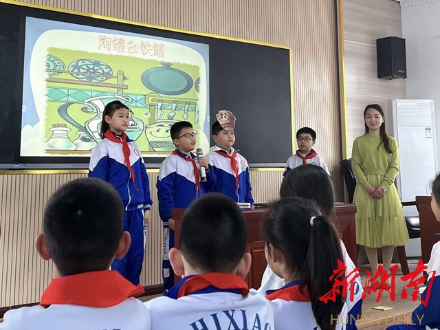 三年级蔡杜老师和1905班的孩子们带来的午读课,让人印象深刻。在“好书推荐”环节,孩子们一个个争当好书推荐人,积极上台分享,激情四射,热火朝天。孩子们一会儿成了性格迥异的“橘子仙女”绿波和金香;一会儿成了谦虚低调的“陶罐”和傲慢无礼的“铁罐”;一会儿又成了拥有强大法力的“神笔”,且善良智慧的马良。他们绘声绘色地描绘着自己阅读的书本,各种高质量的提问、灵活巧妙地回答,令听课教师赞叹不已。授课教师则相机引导,升华学生的提问,迁移到现实生活,让学生提出不同的观点进行辩论,让学生真正做到“辩得真知”。