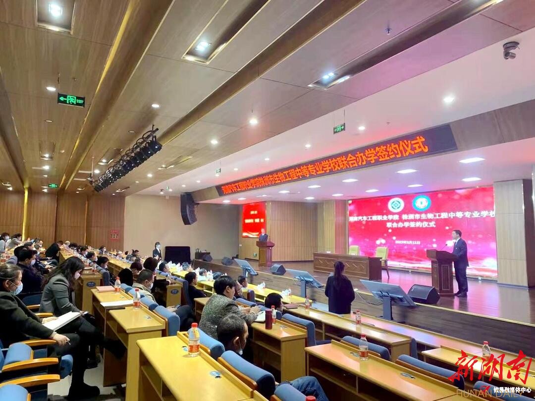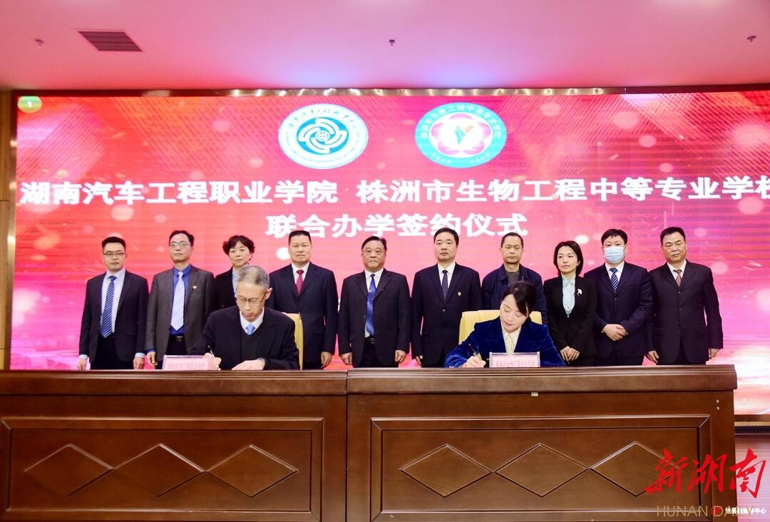 签约仪式上,株洲市生物工程中等专业学校校长黄华畅与湖南汽车工程职业学院签订了五年制高职合作办学协议。根据协议,双方联合开展五年制高职学生培养,采用三二分段制培养形式;培养专业为汽车运用与维修、汽车电子技术、移动互联技术应用,首届计划招生150人。