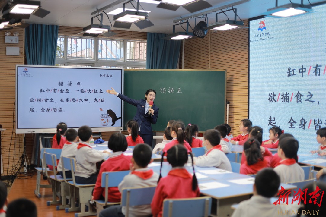 ▲华夏实验小学赵欣洁老师的课堂《猫捕鱼》