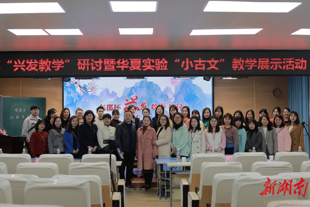 科教新报·新湖南客户端讯(通讯员 欧阳舒妮 彭恋海)3月10日上午,长沙市芙蓉区东郡小学多媒体教室举办了首届东郡杯“兴发教学”研讨暨华夏实验“小古文”教学展示活动。本次活动特别邀请了中国少年培育联盟的樊杰教授及相关联盟学校的校长和老师们,芙蓉区教师进修学校陈婕副校长、长沙市龙继红名校长工作室成员、华夏实验学校代表和东郡二小的教师代表,20余所学校校长及教师代表、东郡小学全体行政、全体语文组老师、卓越教师和35岁以下奋进新青年老师也全程参与了此次研讨活动。