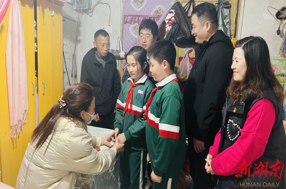 科教新报·新湖南客户端讯(通讯员 章伟东 陈瑶)3月8日上午,在长沙市劳动东路小学书记、校长张必虎的带领下,学校行政代表、党员代表以及五3班的马禹昂和何若雨两位学生代表,带着全校师生献出的爱心去了该校小晴、小欣(化名)两名同学的家里,对他们身患癌症的母亲予以了真切的关心与慰问。“阿姨,这是我们的一点心意,您好好养病,祝您战胜病魔,早日康复!”大家陪着唐阿姨过了一个不一样的“3·8女神节”。