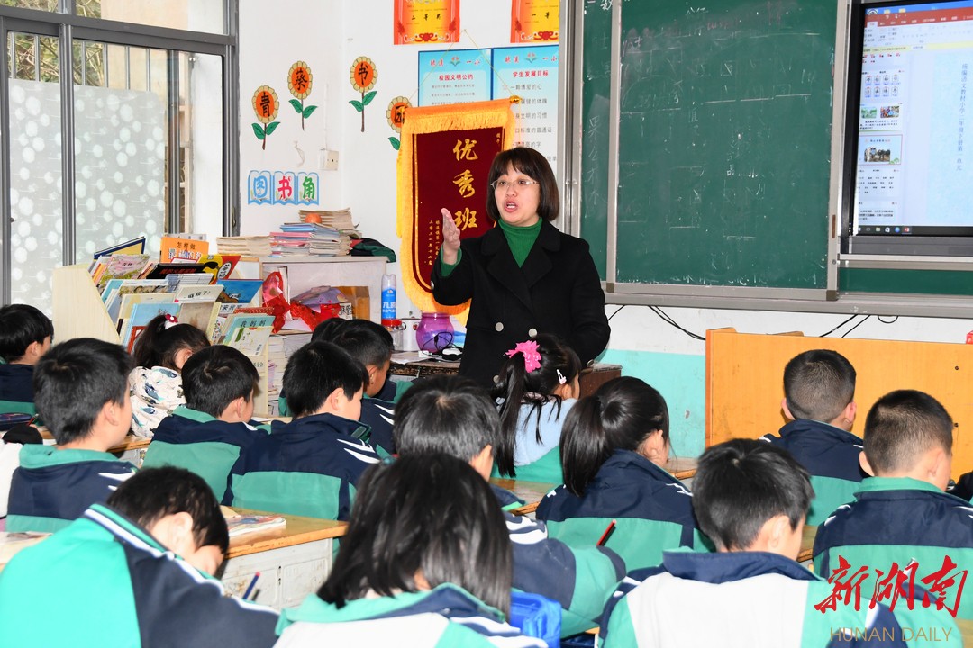 新湖南客户端3月16日讯(通讯员 吴珺 刘纪新)3月7日,在新邵县酿溪镇第一完小二年级2003班安静的课堂上,班主任兼语文老师谢翠花正在上课,伴随着字正腔圆的普通话将课文像故事般娓娓道来,深深地吸引了讲台下的听课的同学们。像讲故事一样讲课,让人如身临其境,这是谢翠花最擅长的授课方式。