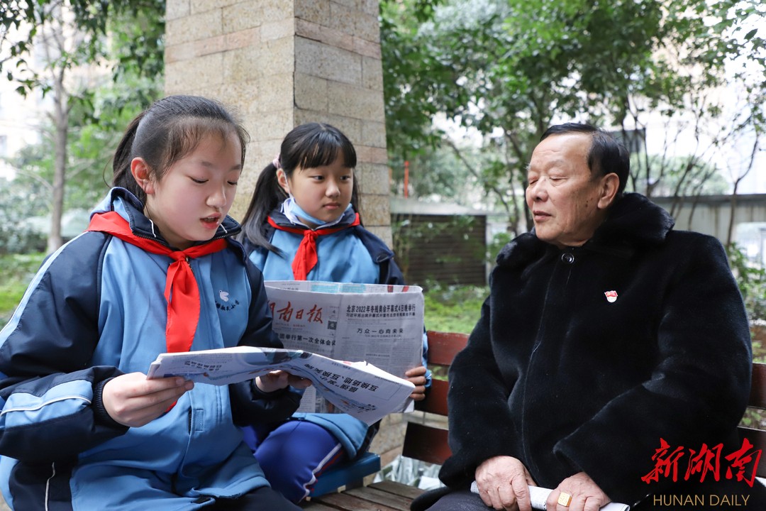 “爷爷您好,您有看冬奥比赛吗?今天我给您讲讲谷爱凌的故事吧……”5年级29班的文麒然同学为老人朗读了一篇关于冬奥会的文章。孩子们饱含情感、抑扬顿挫的读报声让老人们倍感温暖。“年纪大了,听力、视力都大不如前,报纸上的字看不清了。”年过七旬的陈月华老人是有着53年党龄的老党员,看党报已经成为了一种习惯。“听孩子们给我读报,也是一种享受啊!”得知老人的听力不太好,文麒然同学侧身微微靠向老人,用更洪亮的声音读起报纸上的内容。