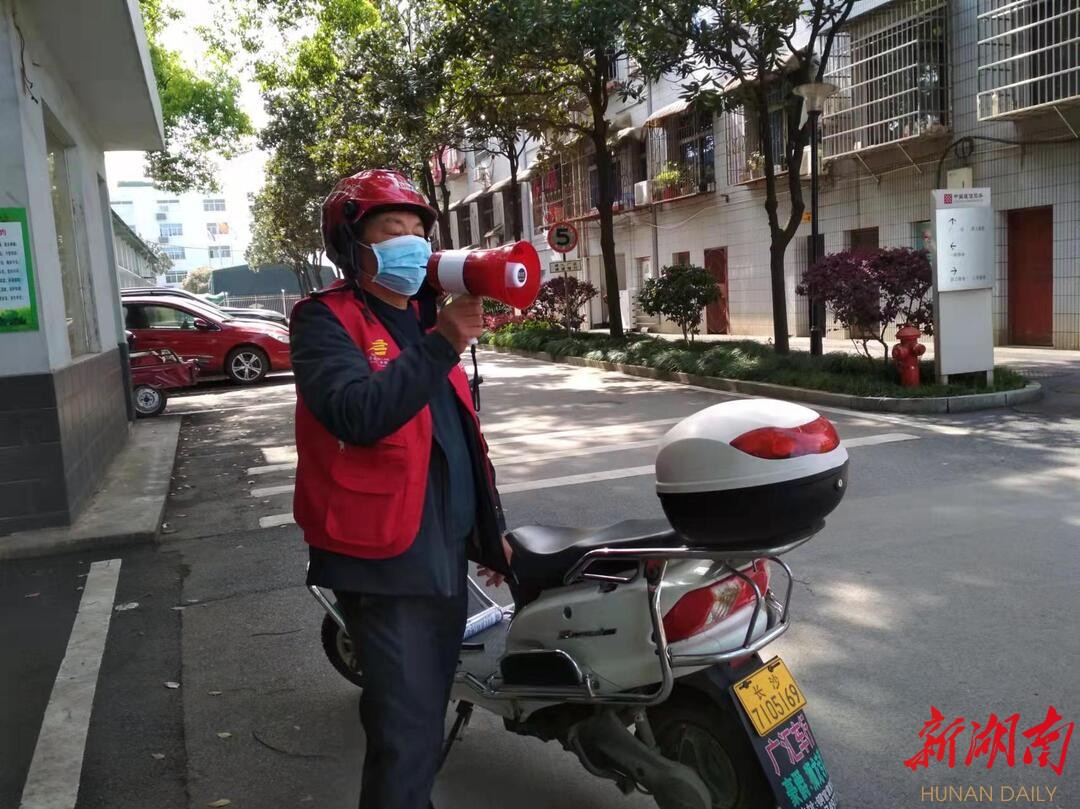 (白马巷社区四级网格长利用喇叭“线下”宣传防疫知识)