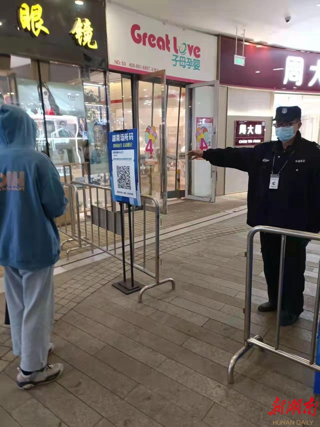 (正荣商圈安保张立建在劝导消费者扫码入场)