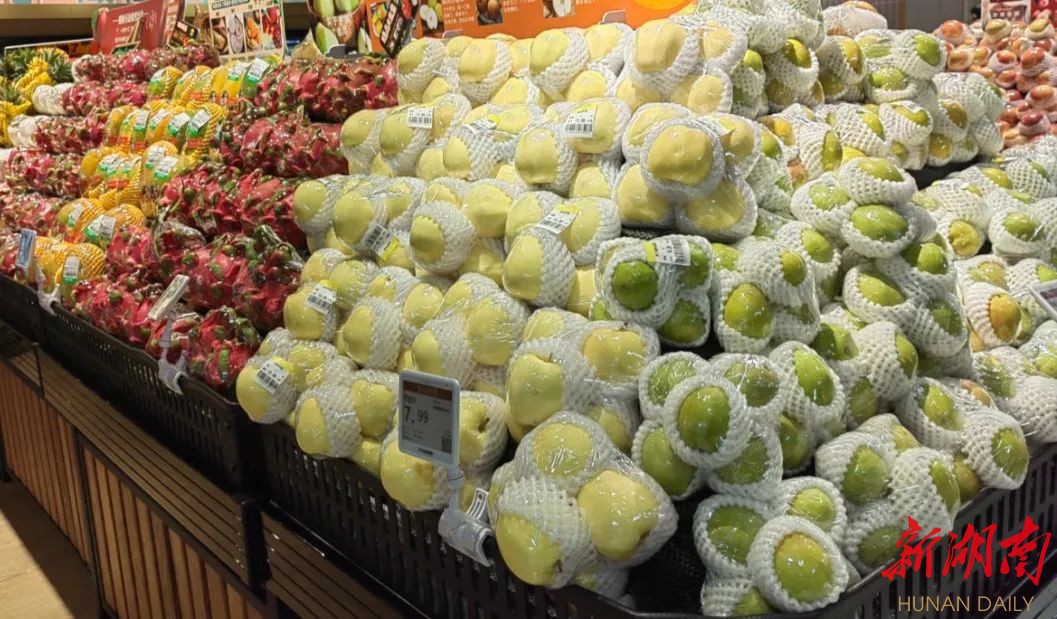 在步步高东塘店,货架上的肉菜水果、米面粮油等生活必需品种类齐全,储备充足。
