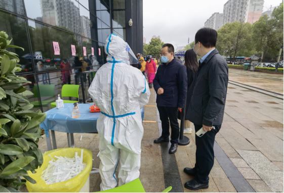 作为井湾子街道井旺社区辖区单位,雨花国资集团在做好本司疫情防控工作的同时,主动担当起了井旺社区君本堂中医馆集中核酸检测的应急支援任务。在集团党委的号召下,集团党员、入党积极分子积极踊跃报名,仅用1个小时,就快速筹建了一支10人的应急队伍。