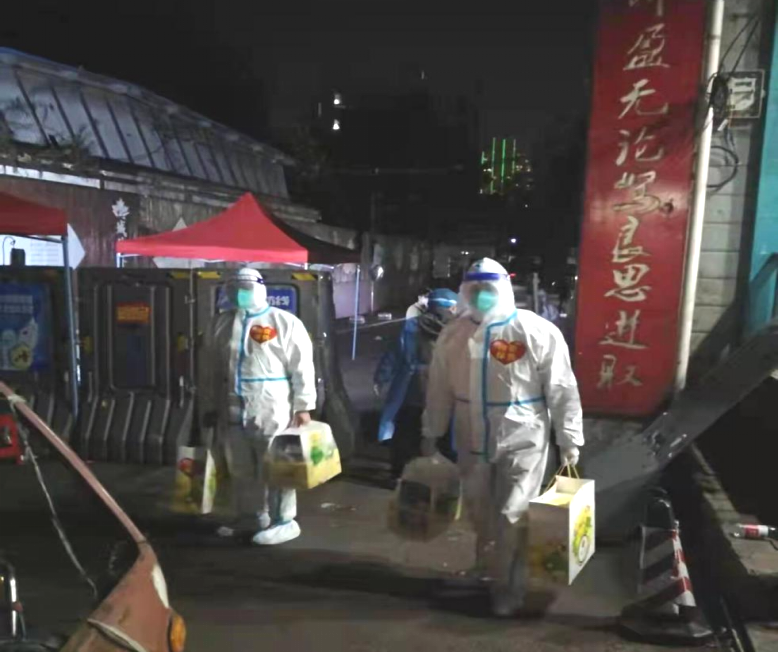 在居民楼道内、物资中转处、核酸检测点,都看得到志愿者们的身影,白天,他们保障着大家的正常生活;黑夜,他们守护着大家的美梦,24小时不停歇。