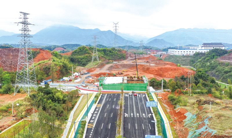 3月23日,春日暖阳穿过云层,照在一条正在建设的双向六车道上。
