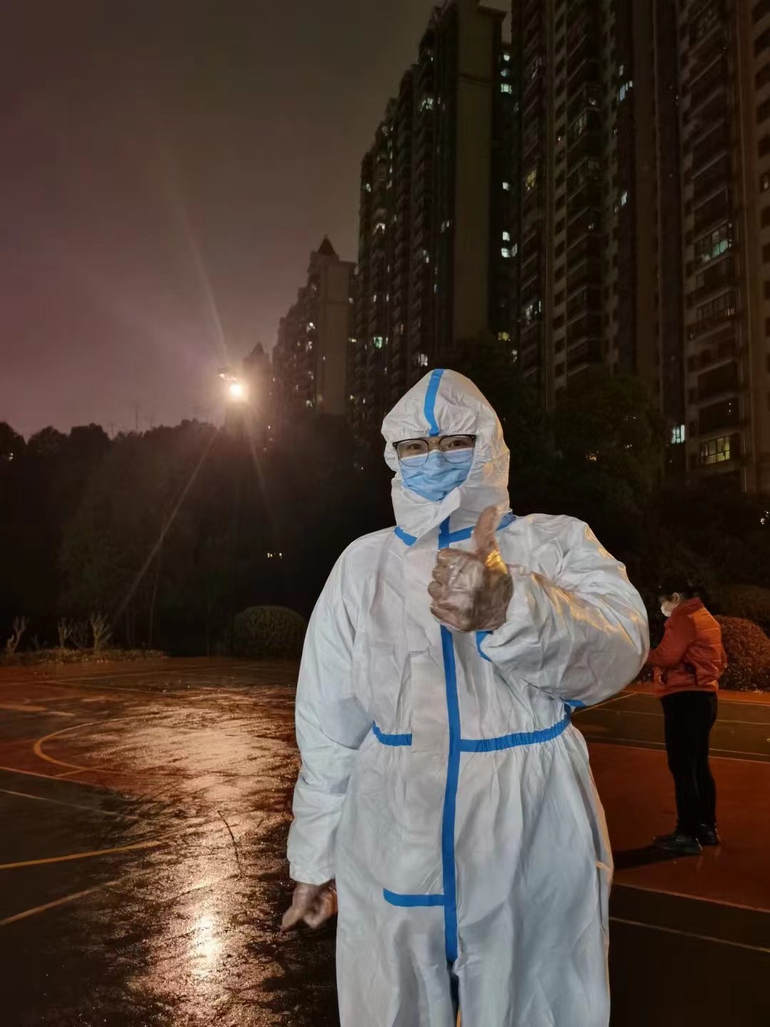 “家人们的健康,就是我们最大的心愿。一轮战斗结束,但丝毫不能放松。我们一起加油!”3月22日8时许,长沙市开福区洪山街道恒大雅苑小区楼栋管家周嘉洋才有空发了条朋友圈。朋友圈配图,是夜色之下,自己身着厚实的防护装备,对着镜头竖了个大拇指。