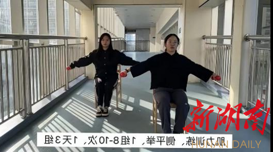 湖南省人民医院呼吸与危重症医学科的赵飞主任、蒯仲凯物理治疗师呼吸康复团队自编一套呼吸康复椅子操,帮助慢性呼吸系统疾病患者居家训练,改善缓解呼吸困难,提高四肢肌力,锻炼平衡功能,预防摔倒,提高有氧运动能力,维持心肺运动功能,从而达到自我管理。