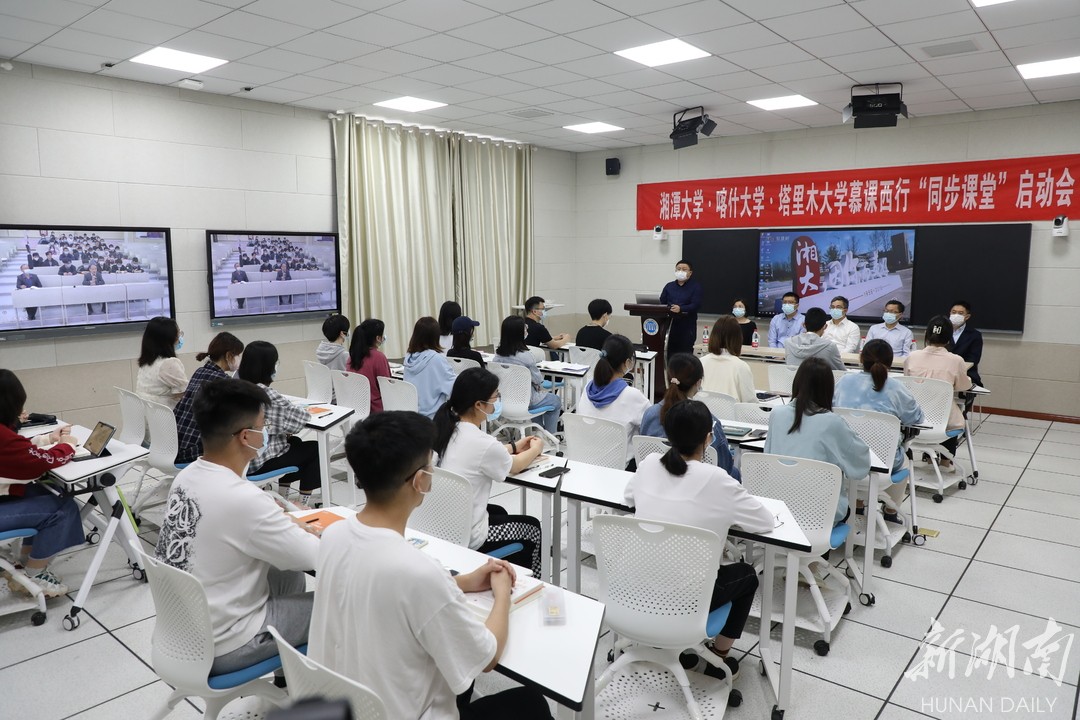 湖南日报·新湖南客户端3月17日讯(通讯员 王成奇 陈宏)3月16日上午,在湘潭大学法学院永雄楼智慧教室,该校法学院王霞教授用通俗易懂、案例与条例相结合的方式,为讲台下的20多名学生讲授《劳动与社会保障法》课程。看似普通的一堂课,其实另有玄机——老师课堂随机点名,作答的是相隔万里的喀什大学或塔里木大学的学生。