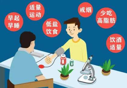 1.保持良好的生活习惯和饮食习惯。肥胖的患者要控制饮食,戒烟,限酒,养成锻炼身体的习惯;在饮食上要注意少盐(一天总量最多一啤酒瓶盖)、少油,比如花生、肥肉含油量大的和油炸食品要注意少吃,多吃水果以及绿色蔬菜等。