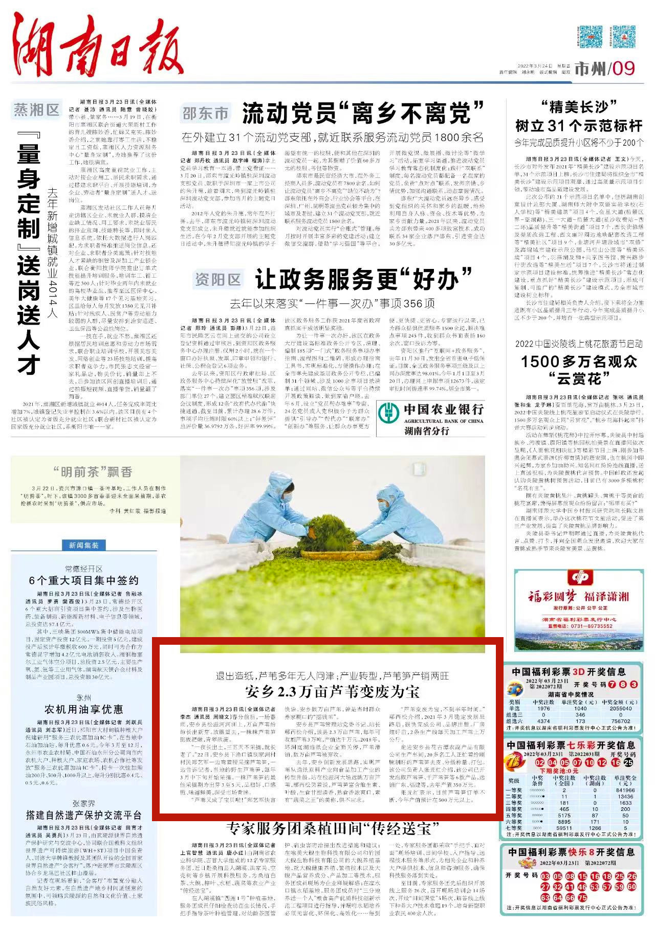 “芦苇又成了宝贝!”郑艺军快言快语。安乡数万亩芦苇,曾是当时群众养家糊口的“摇钱苇”。2018年,芦苇退出造纸后,芦苇退化、种植面积锐减,几乎无人问津。