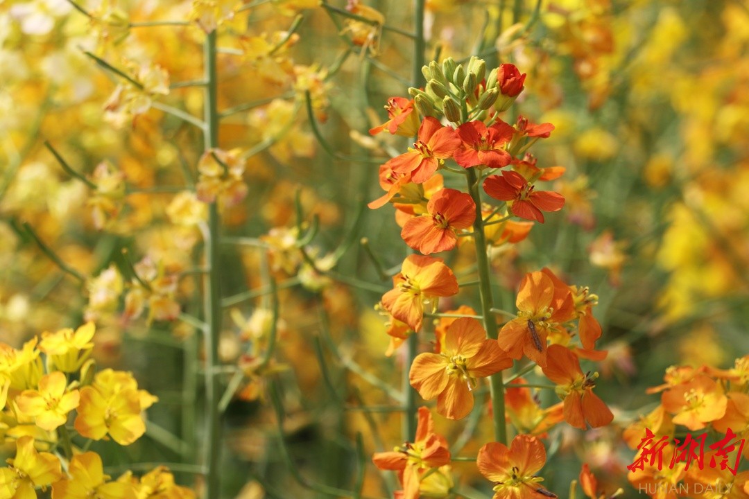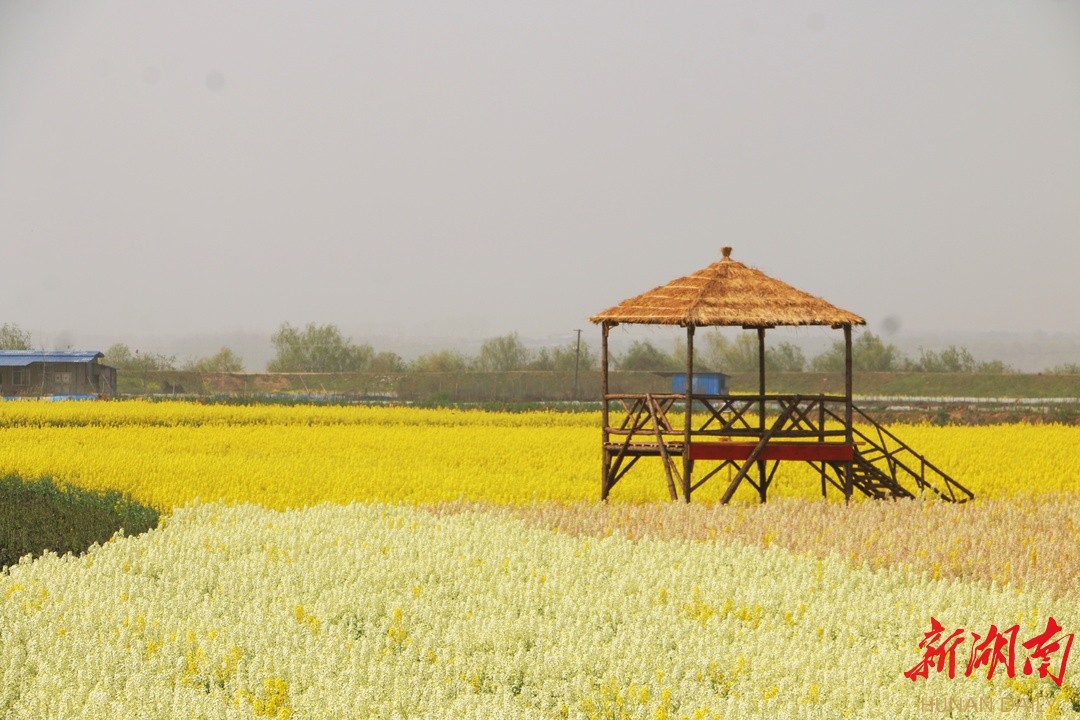 湖南日报·新湖南客户端3月19日讯(记者 卓萌 通讯员 杨金蕾)满目金黄香百里,一方春色醉千山。津市市毛里湖畔,春光并不被金黄的油菜花独占。3月19日,毛里湖镇大山社区多彩油菜花田开园迎客,黄的橙的粉的白的渐变的油菜花,绘出一幅油彩画。