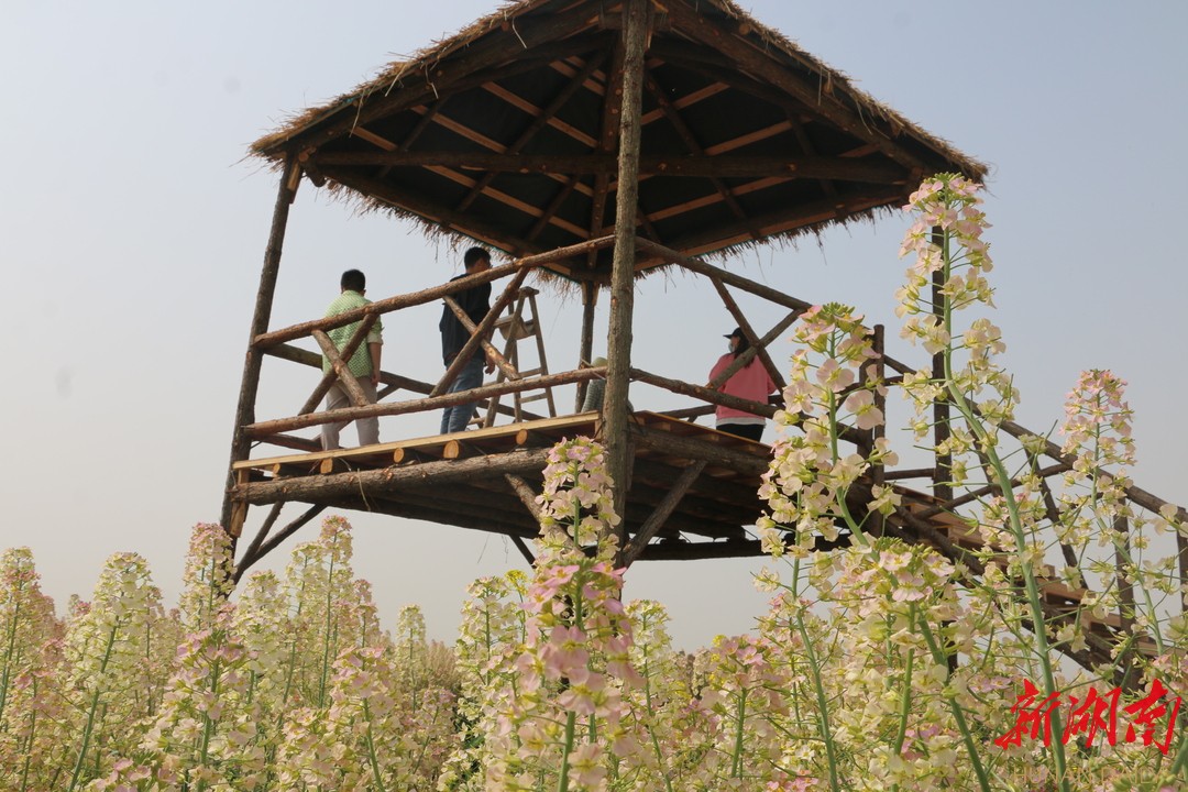 这片花田占地1000余亩,种植9个品种的油菜花。过去,当地居民零零散散地种植棉花、莲藕等,种类较杂,效益不高。去年,镇、社区干部以及村民代表集思广益,合力探索产业发展新路,最终决定依托附近的毛里湖湿地公园,农旅结合打造彩色油菜花海乡村旅游项目。