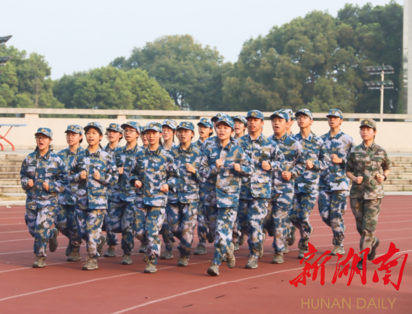 早上六点半,天露出微微光亮,普通班的学生才刚起床,国防班的“军伢子”们在教官的带领下开始了新一天的晨跑。“毛宇杰不要掉队,打气精神来!”“前面的同学把队伍带整齐,后面的同学保持队形!”每一天,教官们都会和学员们一起跑操,操场上的迷彩绿也成为了学校一道靓丽的风景线。
