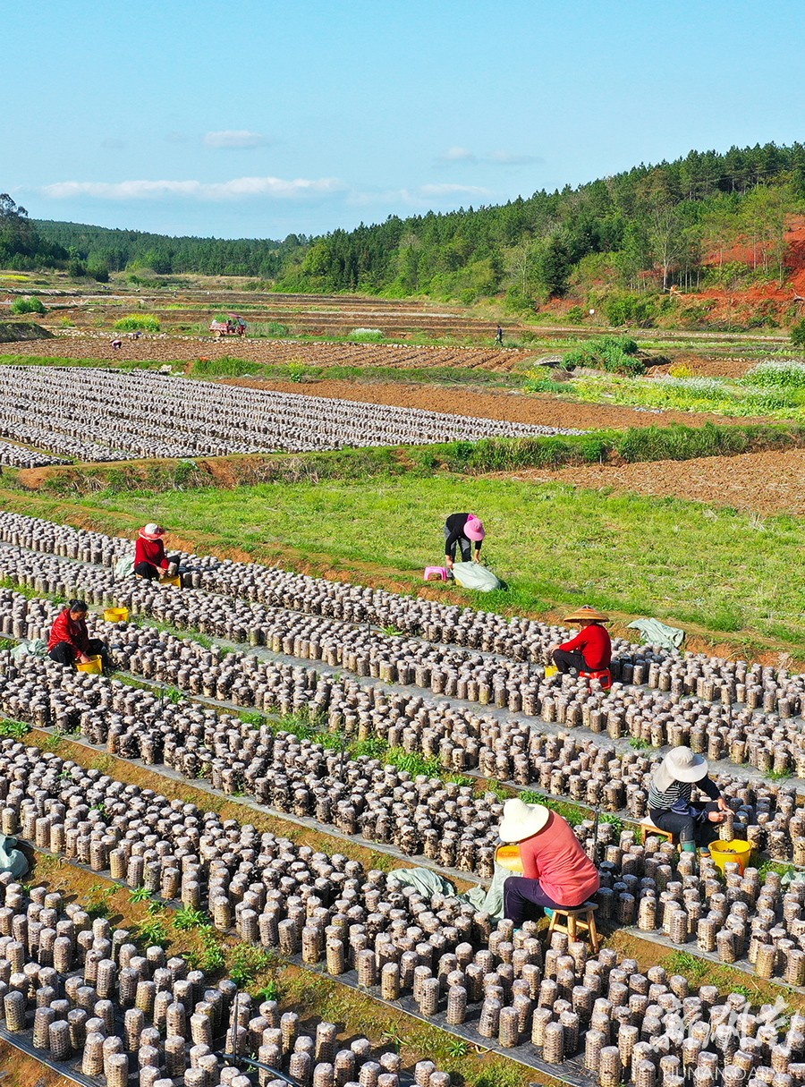 3月28日,新田县大坪塘镇龙溪村,村民在田间采收黑木耳。近年来,该县利用土地富硒优势,大力发展木耳种植产业,龙溪村采取“党支部+合作社+基地”的模式,流转土地种植黑木耳,带动村民增收致富,助力乡村振兴发展。 刘贵雄 蒋文慧 摄影报道