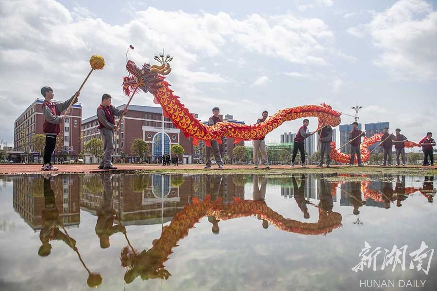 3月25日,学生在课后练习舞龙。近年,道县玉潭学校积极落实“双减”政策,将舞龙运动列入课后服务项目,结合当地传统舞龙民俗文化,创新舞龙招式,让学生在身体得到锻炼的同时,感受中华传统文化的魅力。蒋克青 李文波 摄影报道