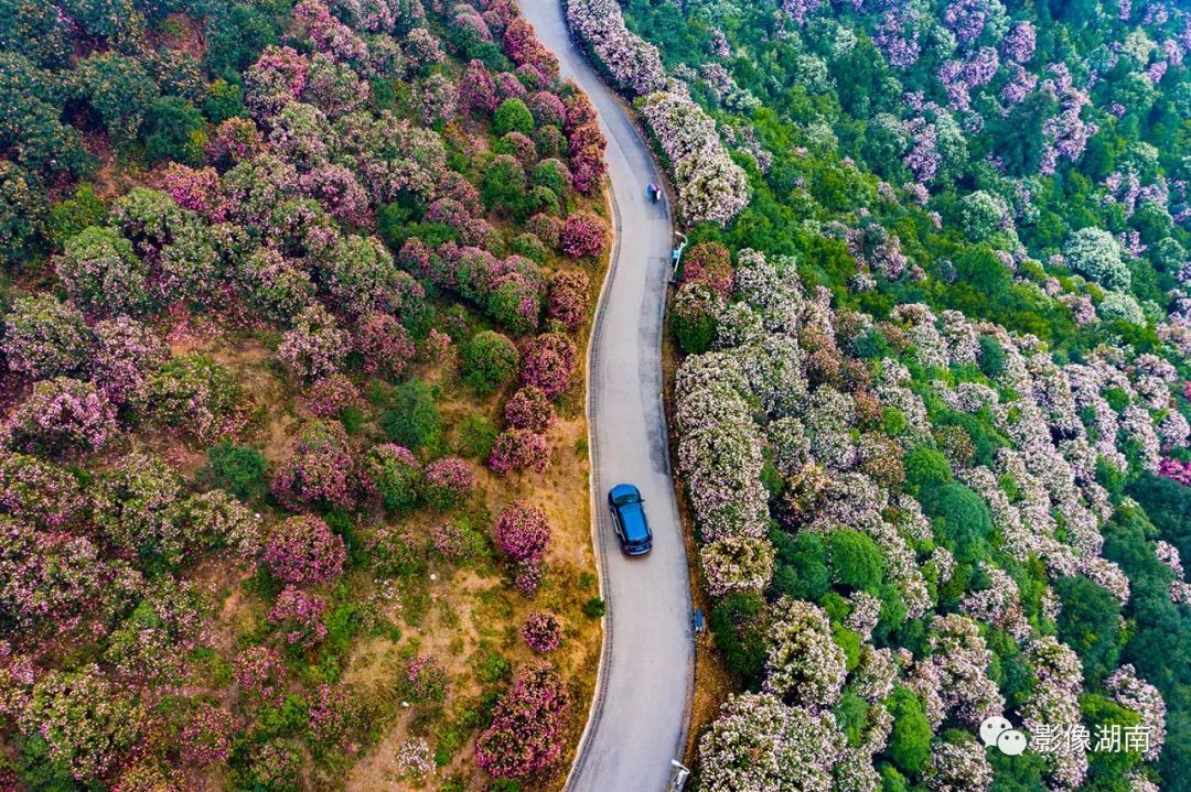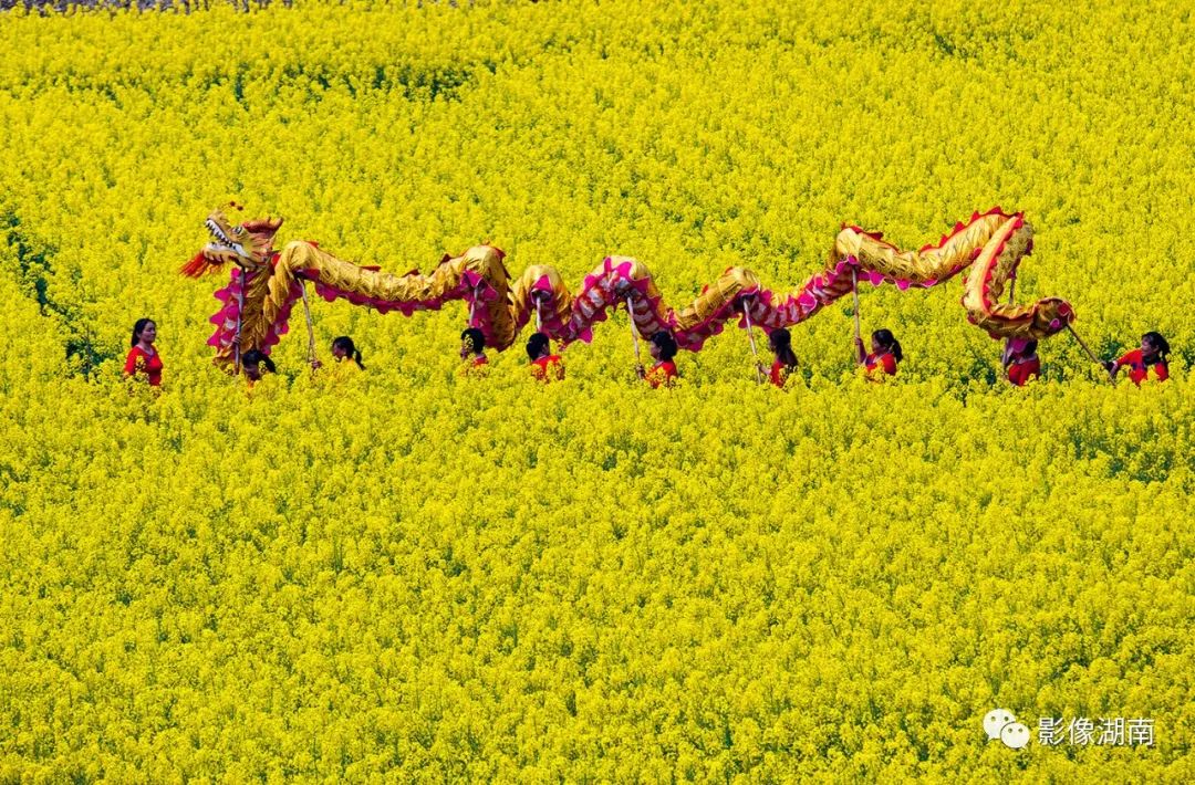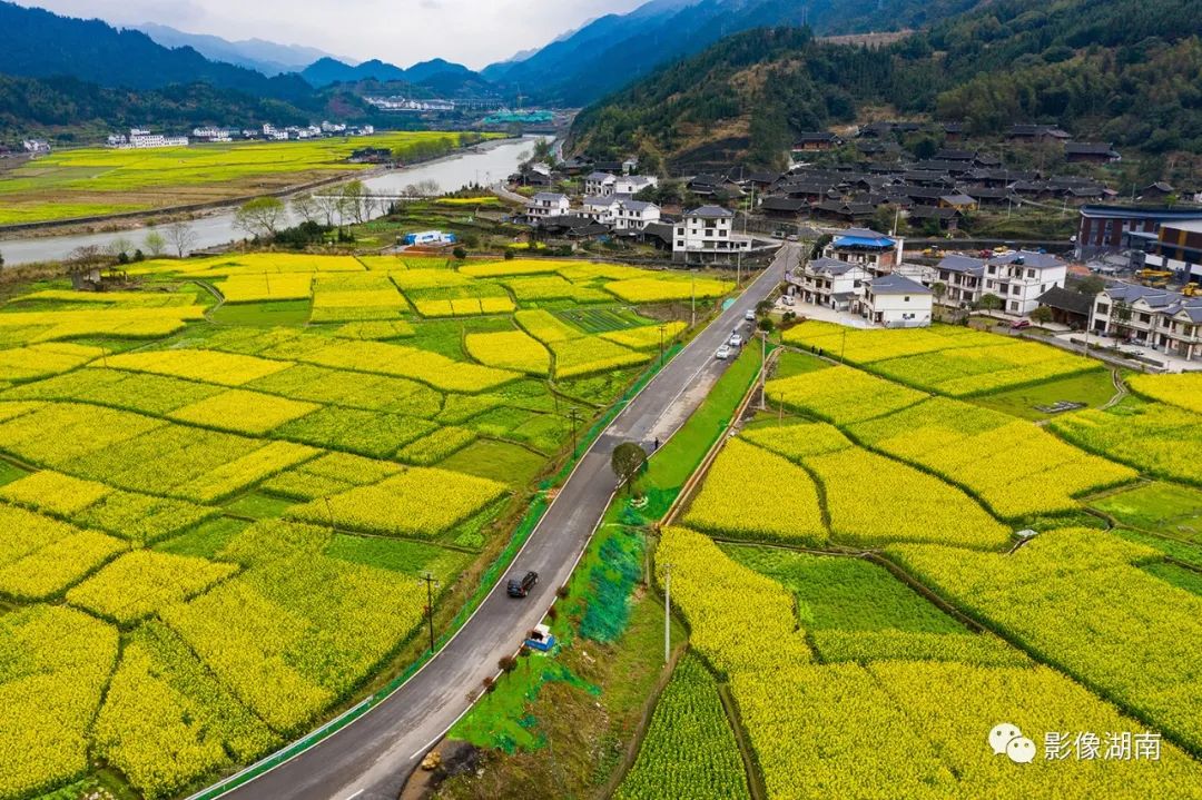 ▲溆浦县北斗溪镇坪溪村,通组公路从千亩油菜花田里穿行而过。