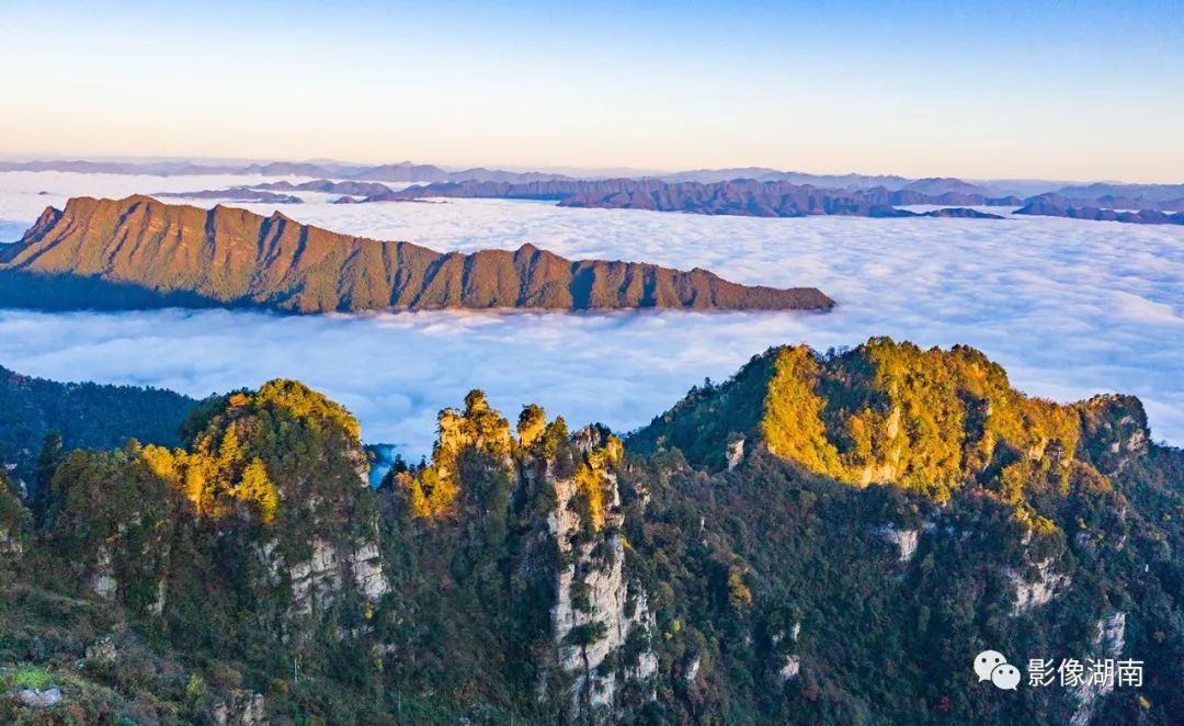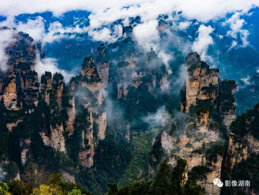 ▲张家界武陵源风景区,云雾在山谷间起伏涌动,宛如波涛起伏的大海,蔚为壮观。