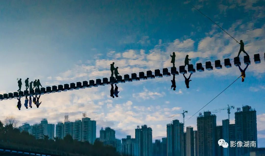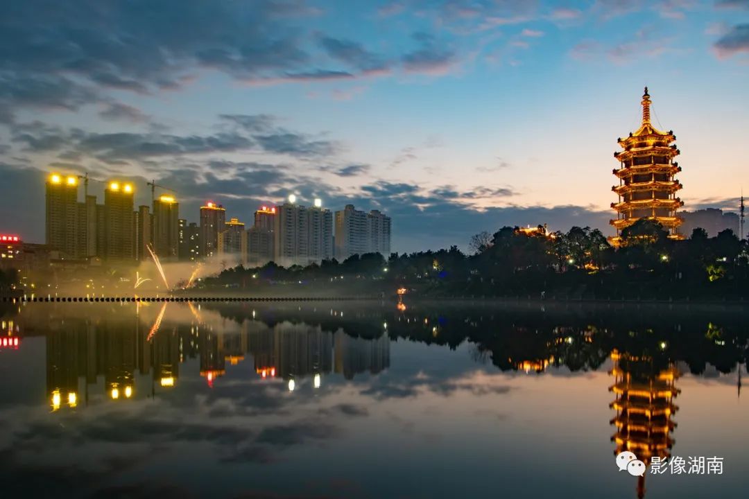 ▲怀化鹤鸣州,将一幅展现城市小景的水面倒影图进行水平翻转,创造出别样、新鲜的视觉观感。