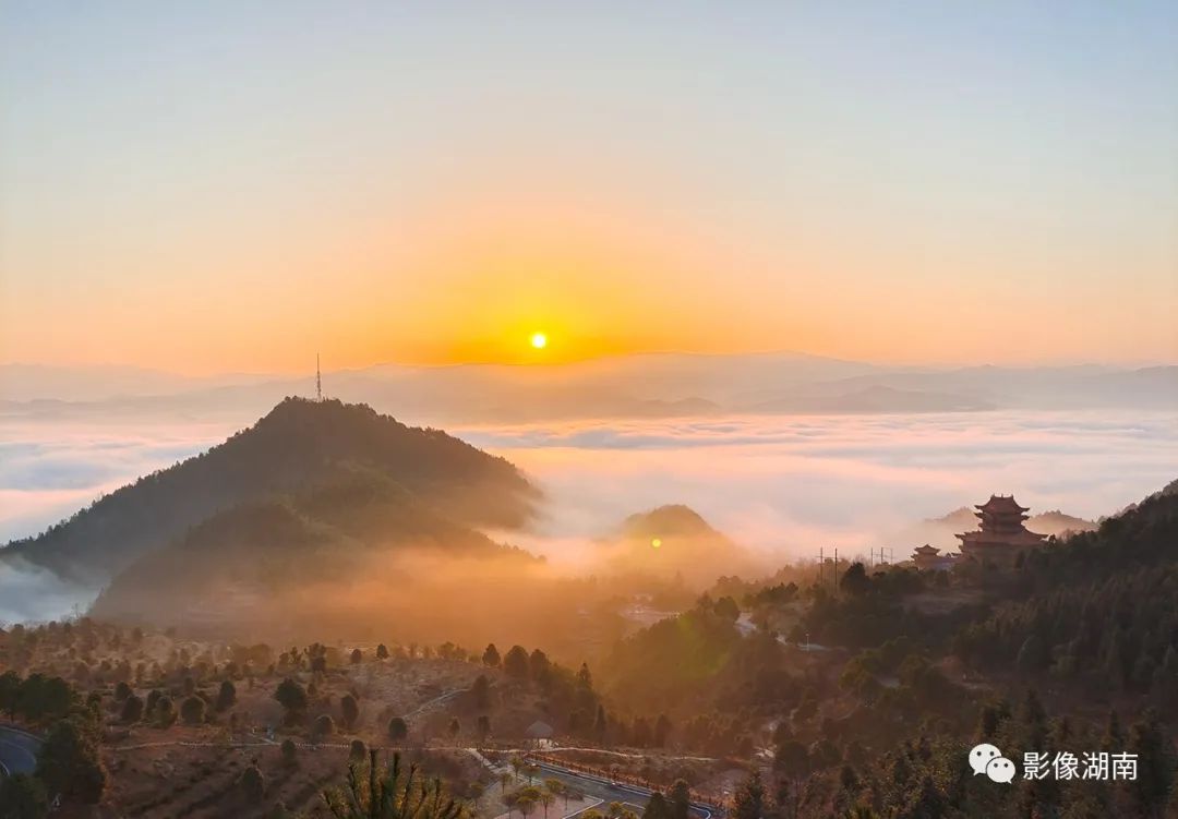 ▲清晨的怀化洪江区嵩云山、密岩尖一带云雾翻滚、云海茫茫。