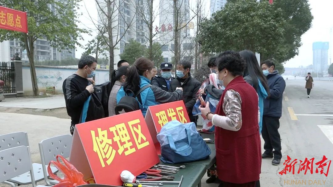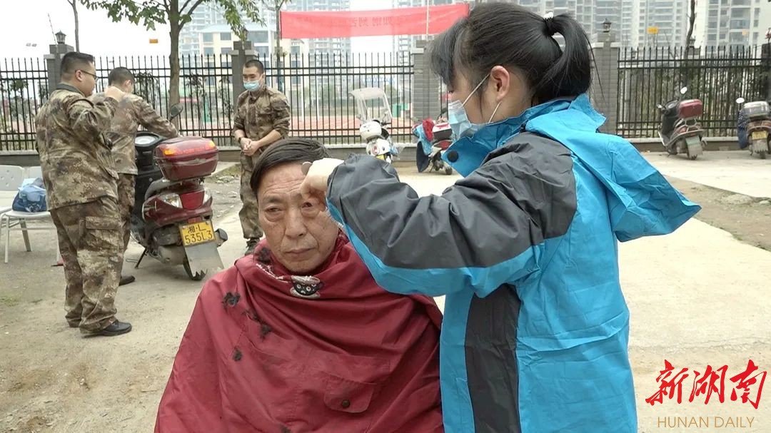 在“学雷锋”活动志愿点,“准新兵”和执勤民兵为居民尤其是生活困难的老人进行免费理发,具有专业技术的“准新兵”免费为辖区居民修理摩托车和电器,用实际行动践行着雷锋精神。