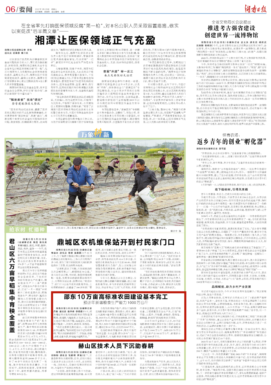 为确保农田高产稳产,邵东市加快推进高标准农田建设,围绕蒸水、邵水、侧水三大流域9座中型水库灌区进行总体规划,2021年6月,明确将流光岭镇、砂石镇、周官桥乡等10个乡镇(街道)的97个行政村,列入2021年高标准农田建设项目实施区,建设任务10万亩,总投资15947万元。