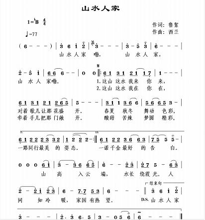 《山水人家》由永定区政协委员鲁絮作词,土家族女歌手西兰作曲演唱,苗族音乐人陶光荣编曲,张家界市社科联指导,张家界市炎黄文化研究会、北京彬鑫文化传媒有限公司、鲁絮政协委员工作室出品。整首歌曲采用火爆的“新土家风”形式,助力“乡村振兴”和“文旅融合”,缩影党和国家对人民群众的关心关怀关爱,展示人民群众的感恩之情和幸福生活。